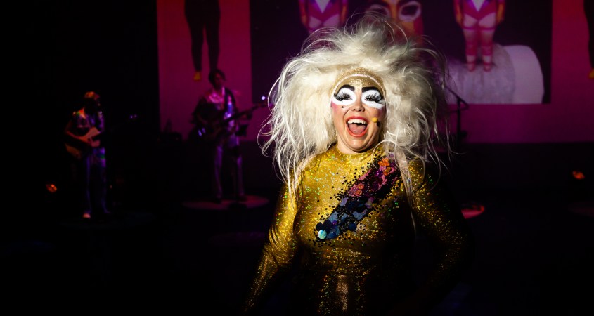 The Legend of Queen Kong – Episode Two: Queen Kong in Outer Space is the latest endeavour from Sarah Ward, the performer behind the infamous Australian cabaret cage-rattler Yana Alana. Ward introduces us to the mythological and immortal being Queen Kong – half ape, half living rock – in the midst of an epic trilogy, a space journey commencing after a daring escape from Planet Earth. Backed by a queer and gender diverse punk band the HOMOsapiens (Bec Matthews, Gen Bernstein, Jo Franklin and Cerise Howard), Kong vaults from experience to experience in an intergalactic quest of sensation. Complementing the group is the omnipresent Motherboard creatively portrayed and signed by deaf performer Asphyxia via projection with a voice over by singer Ilana Charnelle, whose gorgeous music ranges from rock ballad to operatic aria. Accessibility is paramount in this production, with AUSLAN interpreter Kirri Dangerfield providing live signing (as well as doubling as performer) in addition to surtitles.