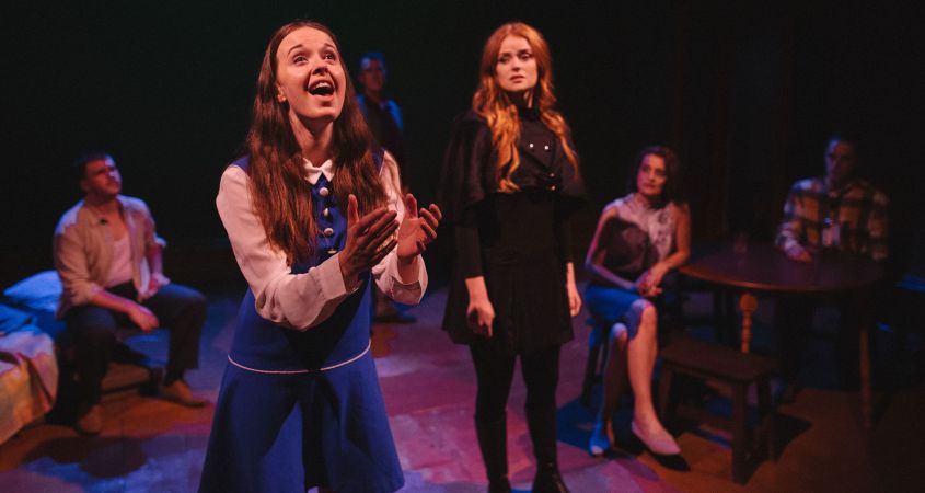 Leading the cast is Billy Sloane as Cris. Sloane brings some solid moments of charisma and empathy to the role and has a gorgeous voice to match. Highlights amongst the cast included the compulsively watchable Nicholas Bell in his dual role of Mikey/Robin, Alice Albon as the cheeky (and at times seriously scary) Malkin and Liam Dodds as the smooth and charming Matthew. The rest of the ensemble all brought considerable contributions throughout the night however it was sometimes hard to avoid the feeling certain actors may not have had the necessary understanding of the text to really do their characters justice.