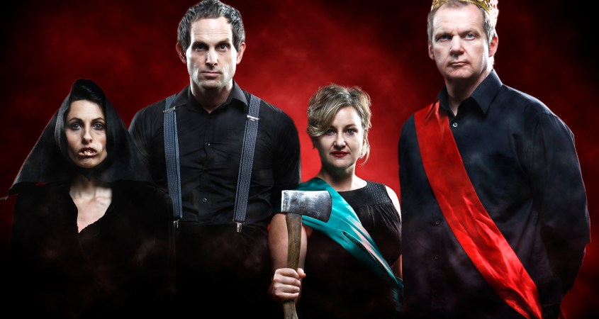 The ensemble cast of Roake, Pratt, Bagin and Forman play multiple characters and at time provide the musical accompaniment as well. There are not many props, so much of the action relies on the audience’s imagination, which is just as well, because this is a retelling designed to include kids and therefore it includes all those gross things that children tend to find amusing – farts, snot and young people’s appropriate stylised murder, to which the kid sitting behind me responded “oh, that’s brilliant”.