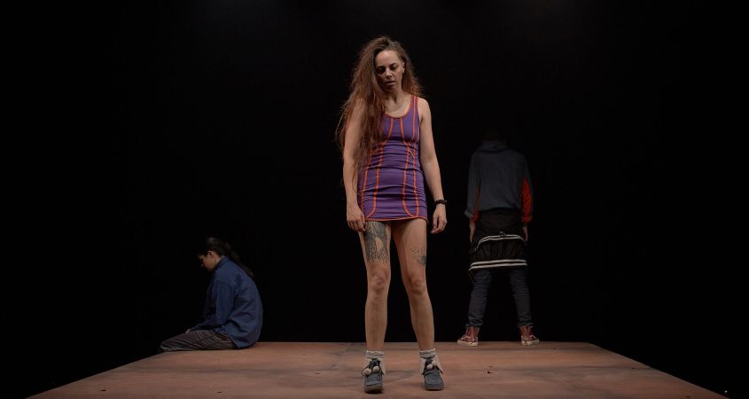 Perhaps sharing the same streets as the women from Shit, are Tanya (Tahlee Fereday), Annie (Carly Sheppard) and Lorenzo (Benjamin Nichol). This next trio of characters present the exploration of love and addiction in the second play of Cornelius’ double bill, Love. The three young people are the abused as well as the abusers and are incredibly difficult to like. Together they share a distorted and mutated reflection of love that holds them together through scenes of equal beauty and toxicity.