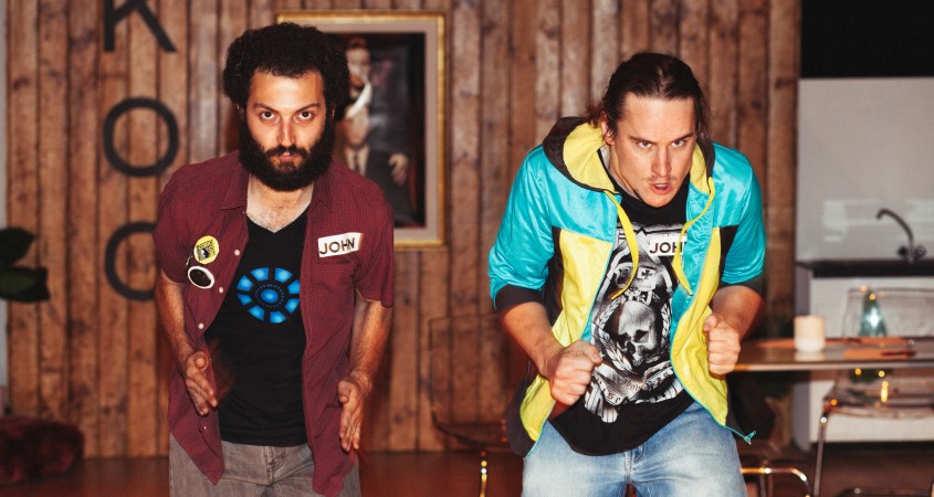 These six Johns (giving real names leads to execution) portray rising desperation with feverish realism, allowing the many moments of violence to feel deserved and authentic. Two audience favourites are undoubtedly Eidann Glover and Raymond Martini, who both give dedicated and extremely humorous performances. Glover finds comedic flare in her character’s unwavering unlikability but also genuine warmth in her affection for partner John (Harry Borland), and Martini plays the gamer nerd out of his depth to perfection. Cazz Bainbridge as tyrannical head honcho Gwendoline sometimes moves too fast through moments of potential comedic gold, but successfully creates a dominating and minacious persona who is always one step ahead of the game.