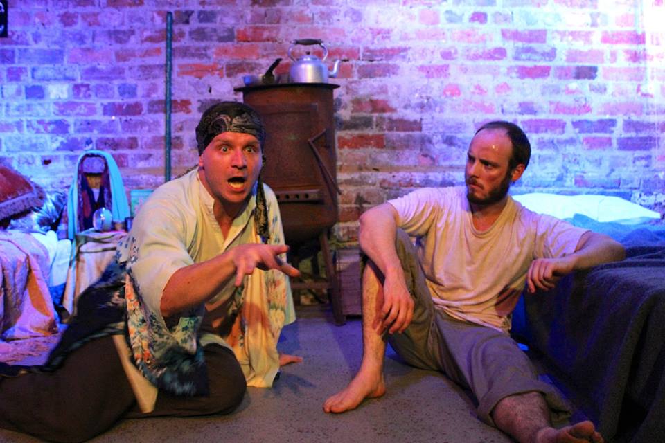 The mood is set as you snuggle into your Indian cushion on the floor around the small intimate stage. Dim lighting, Hindi imagery and exotically draped fabric surround you and the stage. There is nowhere to hide in this theatre: the actors are within touching distance and the room is intensified.