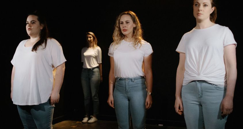 Patricia Cornelius’ exemplary yet disconcerting script was first performed in 2007, and as director Rachel Baring notes in the programme, “it is really hard when you take a piece from 2007 and it is just as relevant now as when it was written”. Baring has taken the raw, exposing elements inherent in Cornelius’ work, and turned the flame to high. Presented in the insanely intimate Fitzroy space ‘The Burrow’ (journey down a laneway off Brunswick Street to find a very cozy black box seating only 25), these feminist depositions are brutally honest and grippingly confronting. Baring ensures the dialogue and impressively rapid-fire choreographed movement are always as perturbing as the claustrophobic space these oppressed performers are unnaturally confined within. Lighting and sound design by John Collopy and Daniella Esposito respectively is exquisite, enhancing the text and direction at every turn.